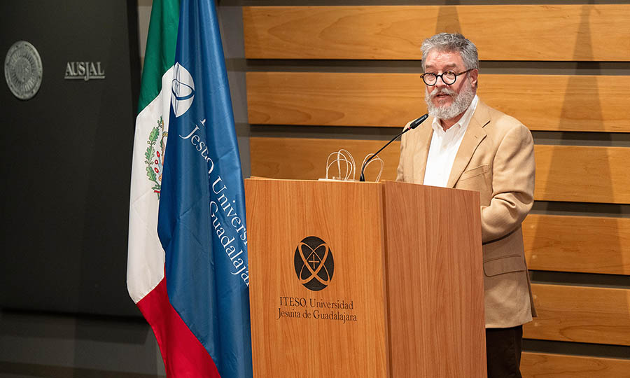 Antes de escuchar a los jueces, Luis Marrufo Cardín, titular de la Dirección General Académica (DGA) del ITESO, dio la bienvenida las personas congregadas en el Auditorio D1. “El tema del foro”, dijo el académico, “toca el corazón mismo de la humanidad. Su presencia aquí nos recuerda que el derecho, en su faceta ética, es una forma de encuentro y camino de reconciliación”. Para el ITESO la actividad era importante, mencionó, porque “la universidad no está aislada de los problemas del mundo, sino que quiere ser un espacio de diálogo” para, acorde con la espiritualidad ignaciana, “mirar la realidad de frente, con compasión y discernimiento”.